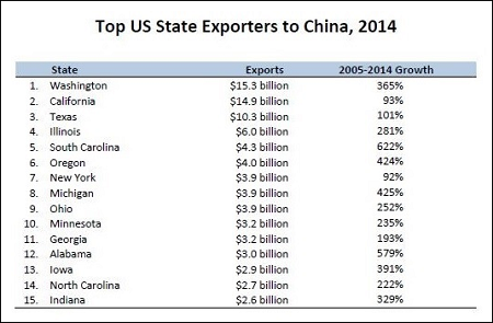 The US will absolutely be affected by China’s devaluation. With over $120 billion in exports to China from the US in 2014, and over 11 million jobs tied to those exports, the US is in a precarious situation. Below is a chart outlining all the states that have reaped astounding economic benefits from their exports to China: