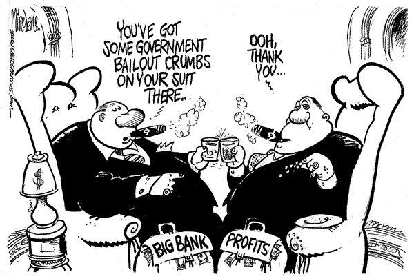 2. Well, you know times are rough when an article in PBS shows up with an economist strongly advocating a run on the banks! Did I mention that this article was from PBS??? (Take a moment to let that sink in…) He drives the point home that he’s not making a cent in interest on his money, which is reason enough to pull the money out. But he tries to even make the argument that we put money in banks to keep it safe. This would be true if banks operated with even a modicum of responsibility. They don’t. They lend up to 90% of their holdings and essentially could never pay out to all their customers if there was in fact a run on the banks. Moreover, the FDIC account doesn’t have enough to cover a full run on the banks either: “as of Sept. 1, about $41 billion in reserve against $6 trillion in insured deposits”.