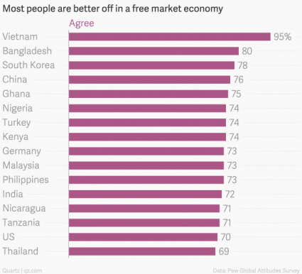 When the Pew Market Research team asked, “Most people are better off in a free market economy, even though some people are rich and some are poor,” this was the response: