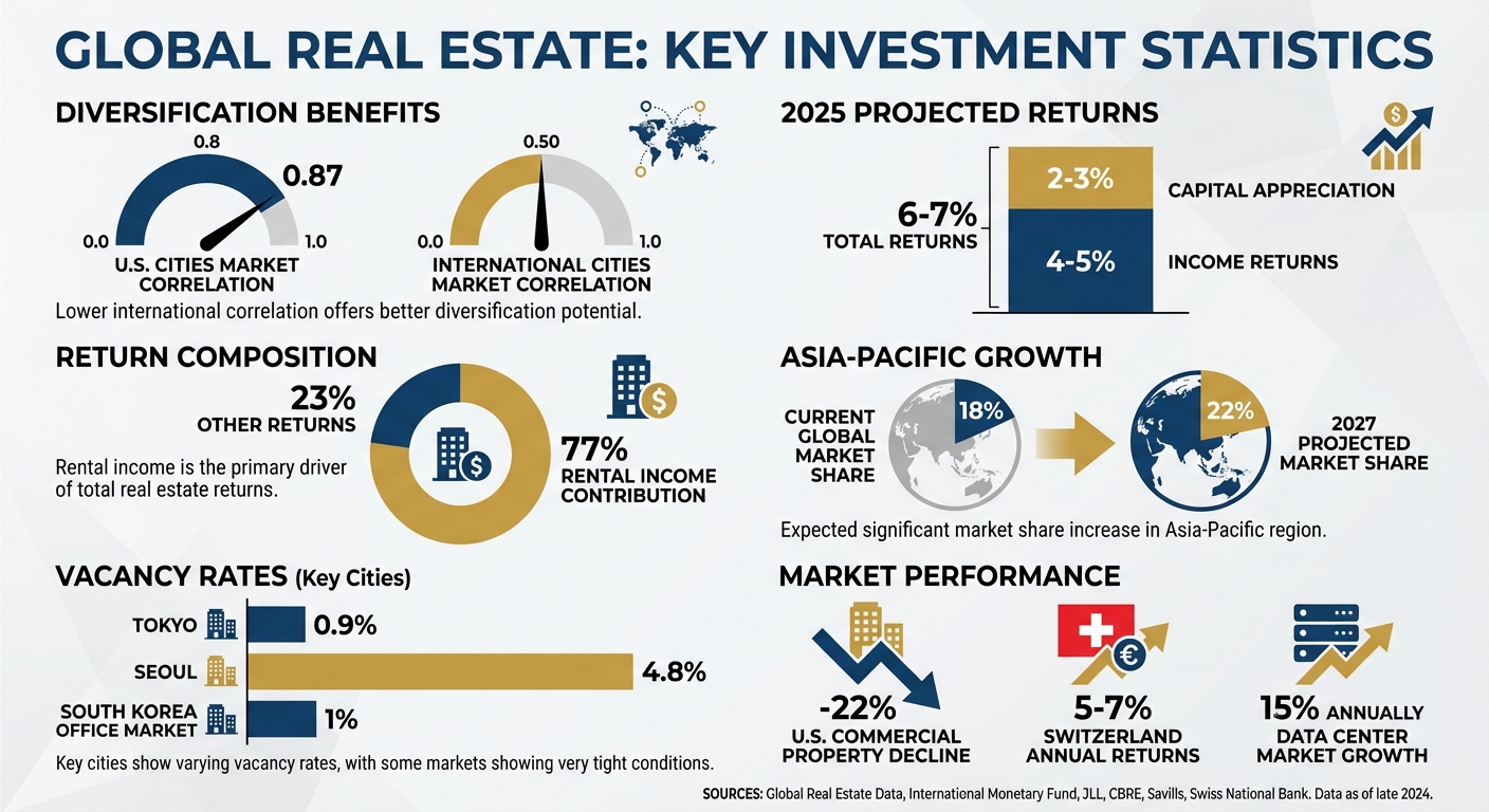 Investing in real estate beyond your home country can act as a strong safety net during economic slumps. Why? Because global real estate tends to behave differently from domestic stocks and bonds, offering a way to balance your portfolio and keep its overall volatility in check. Plus, by spreading your investments across various countries, you lessen the risk tied to economic troubles in any one region.
