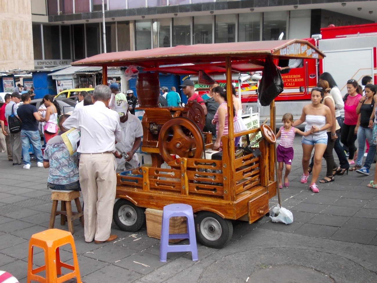 Downtown, things are a bit different. Here’s a young guy with a beautiful . wooden, guarapo stand, crushing up fresh sugar cane, and selling it ice cold, at 50 cents a cup.
