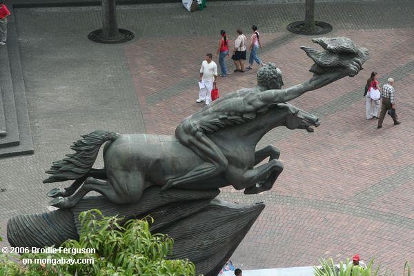 Here, although I’m still in coffee territory, it’s less mountainous. The area looks reasonably well off, and I stop for a break in Pereira. Pereira is known by those in Medallo as a city of free love. At least relative to Medellin, which is saying something, actually. Like in Manizales, it also has an unusual statue of Bolivar, this time naked, lean, and riding a horse. How would liberator George look in the eyes of such an artist, I wonder?