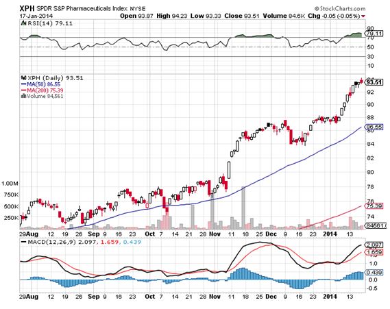 Those who took my advice to buy hepatitis drug manufacturer Gilead Sciences (GILD) joyfully watched it run away to the upside. Expect this to be a recurring theme in my equity coverage. (XLS), (XPH), and (XBI) are on the menu and looking tasty.