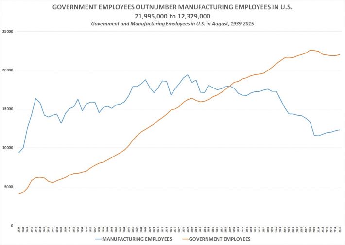 Government employees outnumber manufacturing employees by nearly 2 to 1.