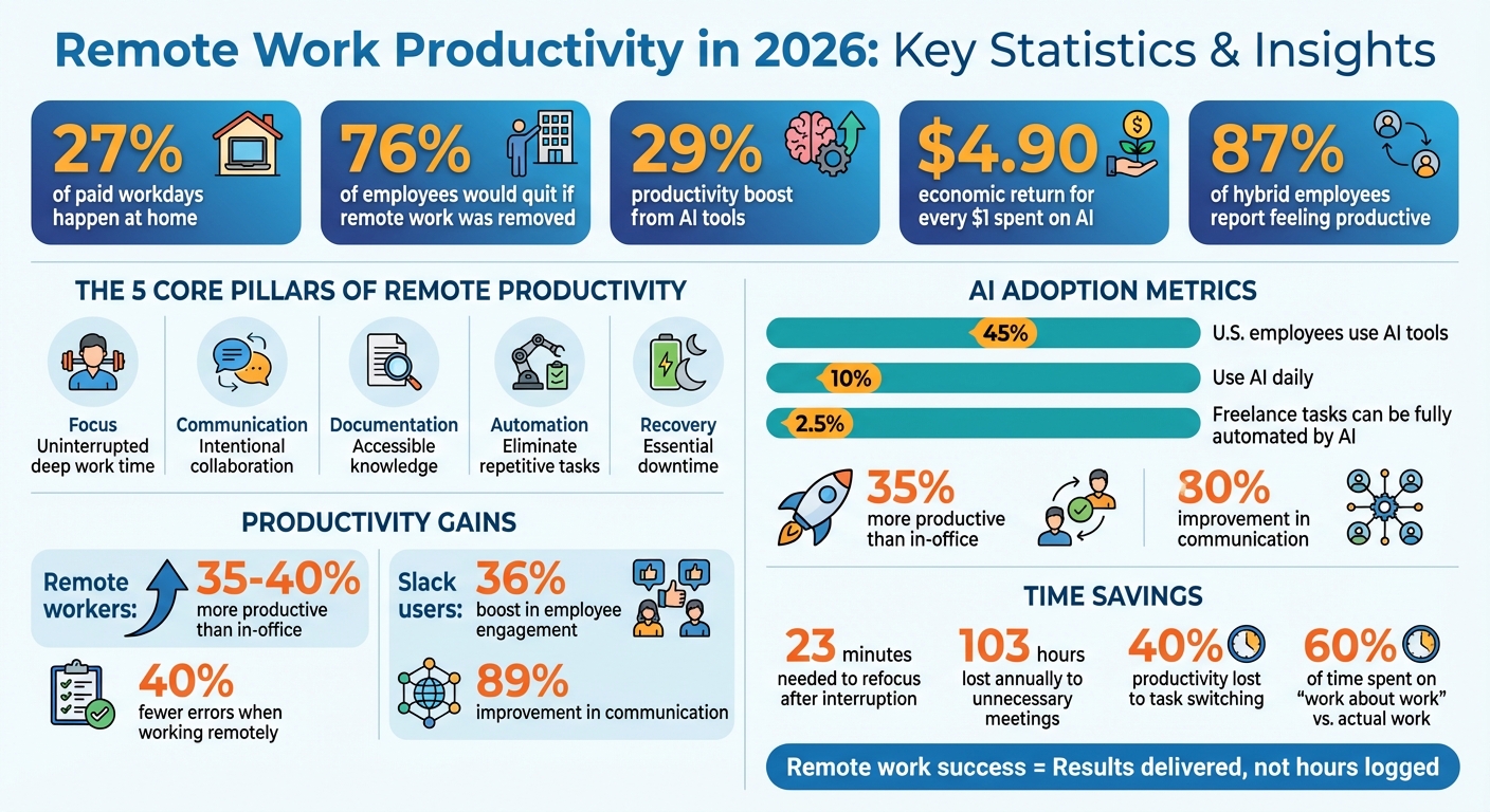 Remote work in 2026 is now the norm, with 27% of paid workdays happening at home. Success isn’t just about working from anywhere – it’s about working smarter. Here’s what you need to know: