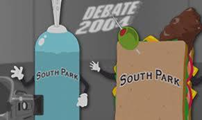 A heated political debate between the giant douche and a turd sandwich.